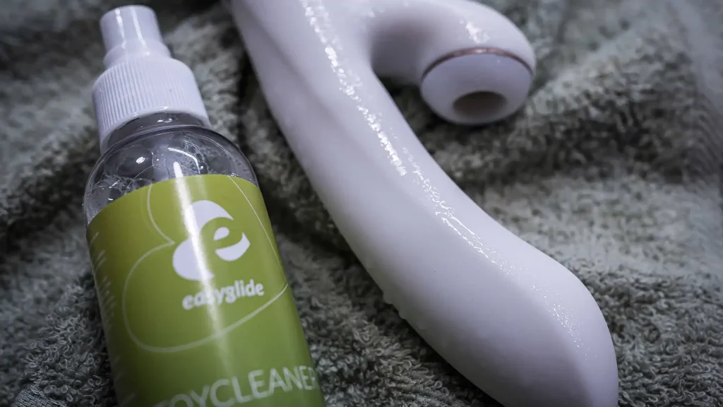 Egy-egy pajkosabb együttlét után mikor több játékszert is használtunk, nem mindig van erőnk elmosogatni mindent még aznap, így a hálószobánkban külön helyet kaptak a használt “szennyes” örömszerzők. Ezeket másnap csap alatt szappanos vízzel alaposan lemossuk, majd ezek után még játékszertisztítóval is alaposan letakarítjuk a biztonság kedvéért. Az így teljesen tiszta eszköz visszakerülhet az elkülönített helyére, ahol nem találkozik más anyagokkal, így használat előtt mi nem tisztítunk újra.
