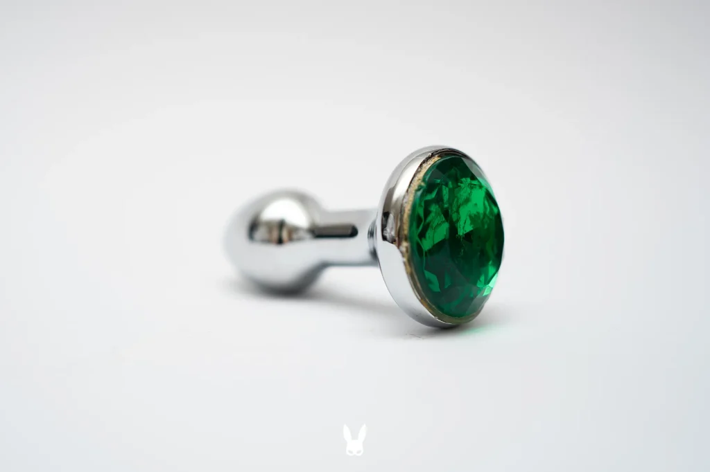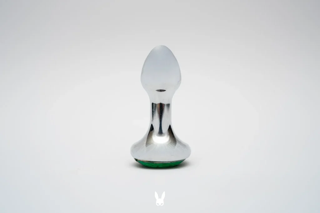 A kínai fém análdugó teljes teste rozsdamentes acél (jó esetben, ha jó helyről sikerül vásárolnunk, bár a legtöbb lehetőség véleményünk szerint biztonságos ilyen téren), a talp részbe ragasztott színes műanyag kővel díszítve. A behelyezésre szolgáló rész szépen megmunkált, sorja sehol sincs, bár a felületen a bemarás nem tudom mennyire lehet szándékos. A behelyezésre szolgáló kúp rész nagyon apró, eleget téve az “XS”-es méretjelölésnek. Az eszköz szára vékony, még a kúp résznél is vékonyabb. Ez köti össze a behelyezésre szolgáló részt a talppal, ezen a területen “fogjuk” az eszközt. A talp formája lehet kerek, szívecske, sokszög, vagy egy nyújtott “banán” forma is. Hogy ezekből melyik a legjobb? Nos, egyrészt ez szubjektív, másrészt pedig a cél határozza meg.