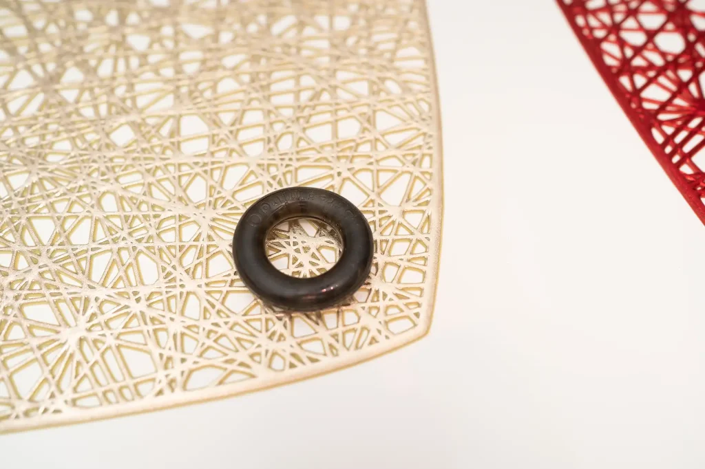 Egy fekete színű, szolidan átlátszó SEBS szilikonból készült viszonylag kisebb méretű péniszgyűrű. A felülete szép egységes, bár az illesztés az oldalán elég feltűnő. A gyűrű egyik oldalán szépen domborított márkajelzés látható, illetve a “Premium minőség” felirat. Ami már az első kézbevételkor feltűnik, hogy egész “tömör” érzetet ad, ezt az is elősegíti, hogy abszolút nem olyan nyúlékony, mint amit megszokhattunk ebben az árkategóriában. Elég merev, sokkal több erő kell a széthúzásához, mint például a már fentebb is említett Blush gyűrűknél.